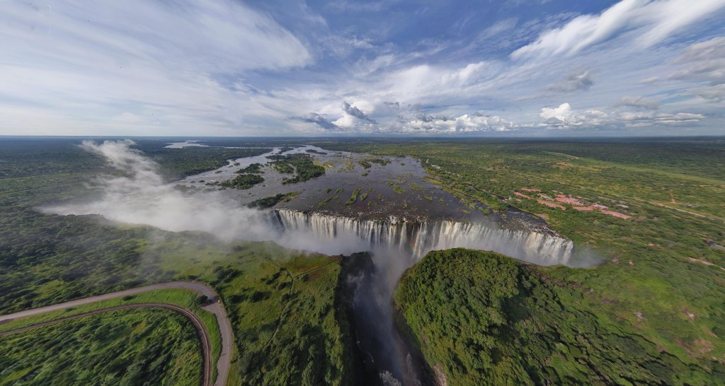 Таким вы можете увидеть водопад, если возьмете вертолетную экскурсию — http://www.airpano.ru/files/Victoria-Falls-Zambia-Zimbabwe/1-3-2