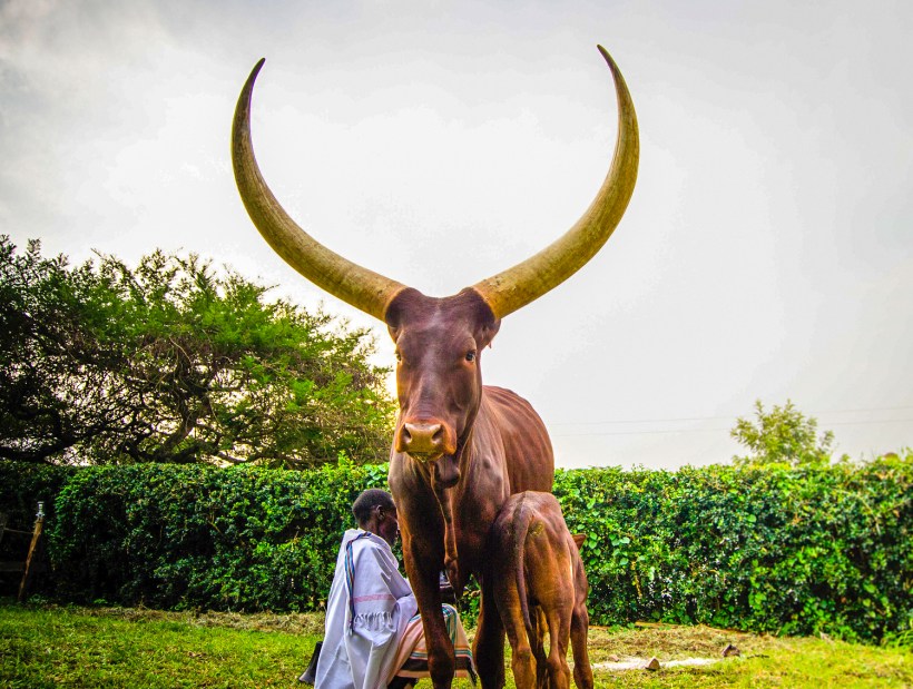 Длиннорогие коровы Анколе Ватуси и традиционная деревня народности баньянколе